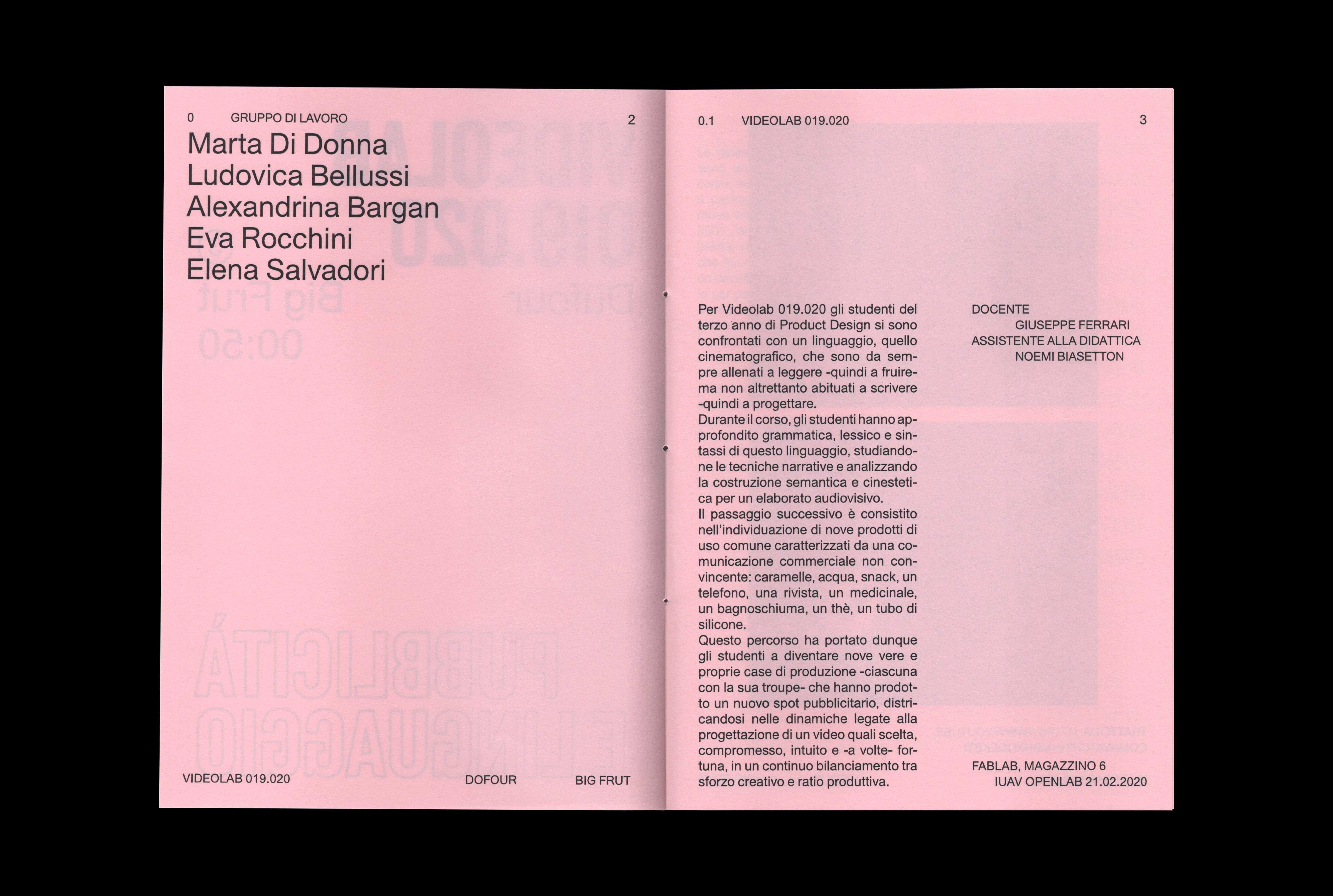 Durante il corso Pubblicità e linguaggio gli studenti si sono trasformati in sceneggiatori, produttori e montatori, cercando di bilanciare sforzo creativo e ratio produttiva. Attraverso lo studio delle unità narrative che compongono un prodotto audiovisivo, passando per l’analisi della costruzione semantica e cinestetica dello stesso, il corso ha visto gli studenti districarsi nelle dinamiche legate alla progettazione quali compromesso, intuito e - a volte - fortuna. Il risultato vede la realizzazione di nove spot pubblicitari per prodotti di uso comune, nei i quali ogni gruppo ha imparato e seguito i processi di pre-produzione, produzione e post-produzione rapportandosi singolarmente ai diversi incarichi.