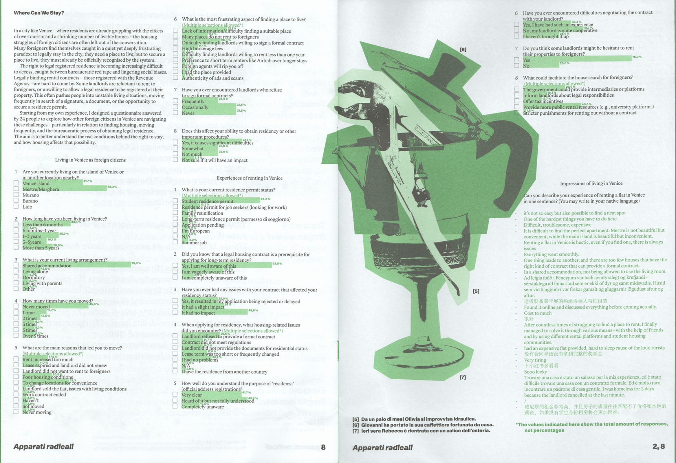 Come si può leggere la questione abitativa a Venezia oltre ai dati, la cronaca e la protesta? Quali sono gli aspetti surreali, a tratti magici, delle micro-resistenze nel contesto della casa e della città? E in che modo, ognuna di noi, si radica nella laguna attraverso il proprio corpo e i propri saperi? Partendo da queste domande, la Masterclass Apparati Radicali ha esplorato il tema del diritto alla casa a Venezia raccogliendo appunti verbali e visivi sulle politiche che condizionano la vita delle sue abitanti.