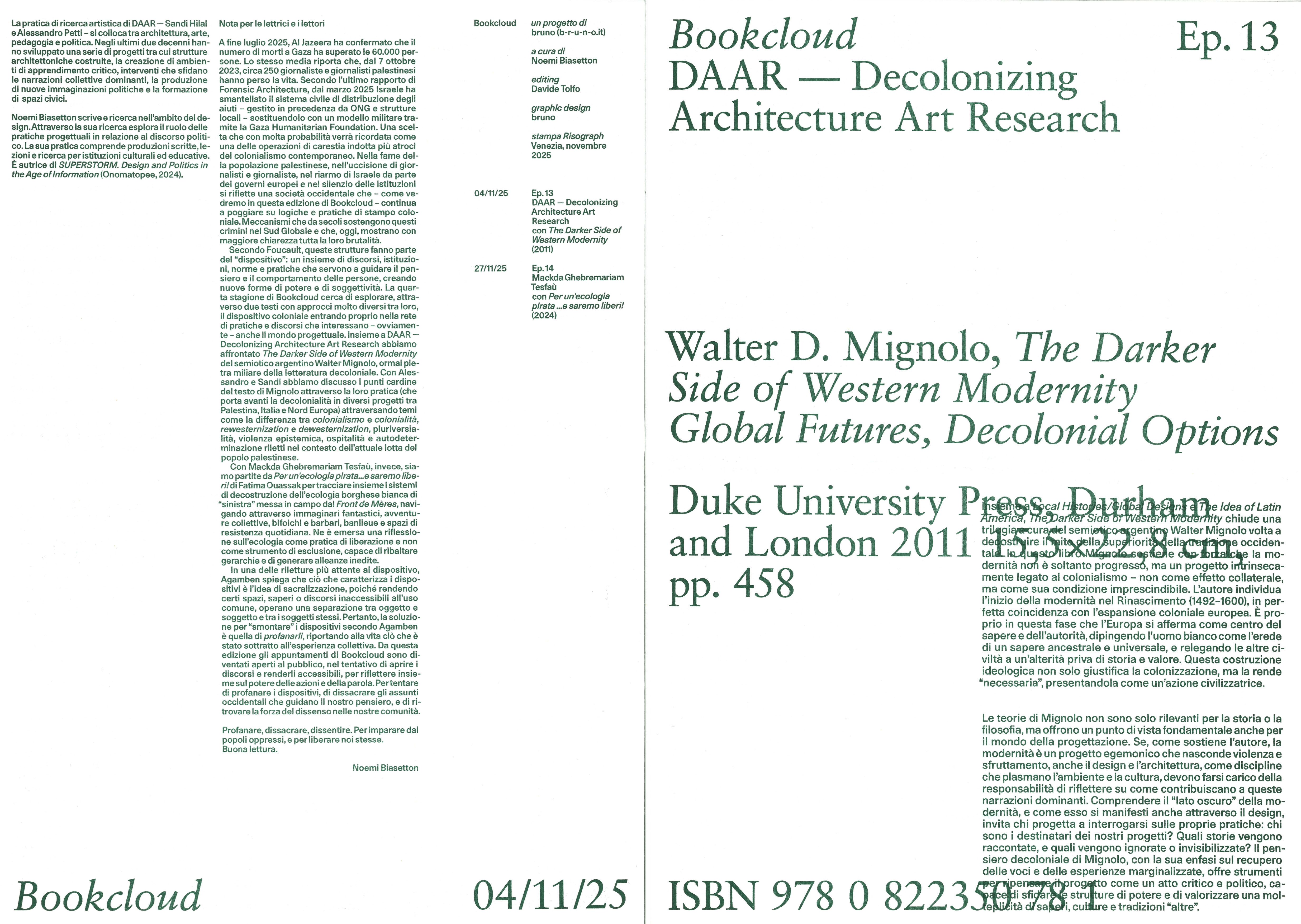Ep. 13 DAAR — Decolonizing Architecture Art Research with The Darker Side of Western Modernity by Walter D. Mignolo (Duke University Press, 2011);