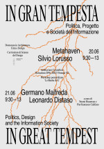 “Ship without a helmsman in a great tempest” is how Dante, in the sixth canto of Purgatory, defines 14th century Italy – characterised by instability, great changes and weak leaderships. Today, in the information society and in the midst of the process of aesthetisation of political life predicted by Benjamin a century ago, international politics is once again in turmoil, juggling propaganda, populism and data control. The conference In Great Tempest wants to address these issues and open a reflection on the role of design within the dynamics concerning political discourse.